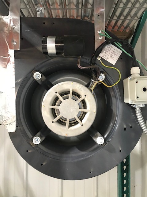 The fan I ended up using on this system has the motor inside the squirrel cage fan which helps keep the motor cool. This is important because the fan runs a 24/7, not on and off like on your home HVAC. This model is a Dayton 1XJY1 1/2 hp 1060 RPM 115V Furnace Blower. About $500