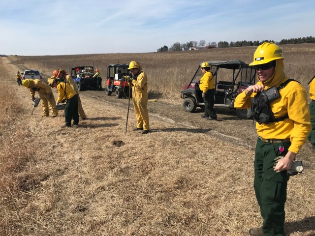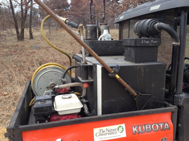 At Nachusa Grasslands we use several vehicle mounted water sprayers on our fires. We call them “pumper units”. Photo above is a crew about to start their test ignition. You don’t see backpack water sprayers as most crew are assigned to a pumper unit.