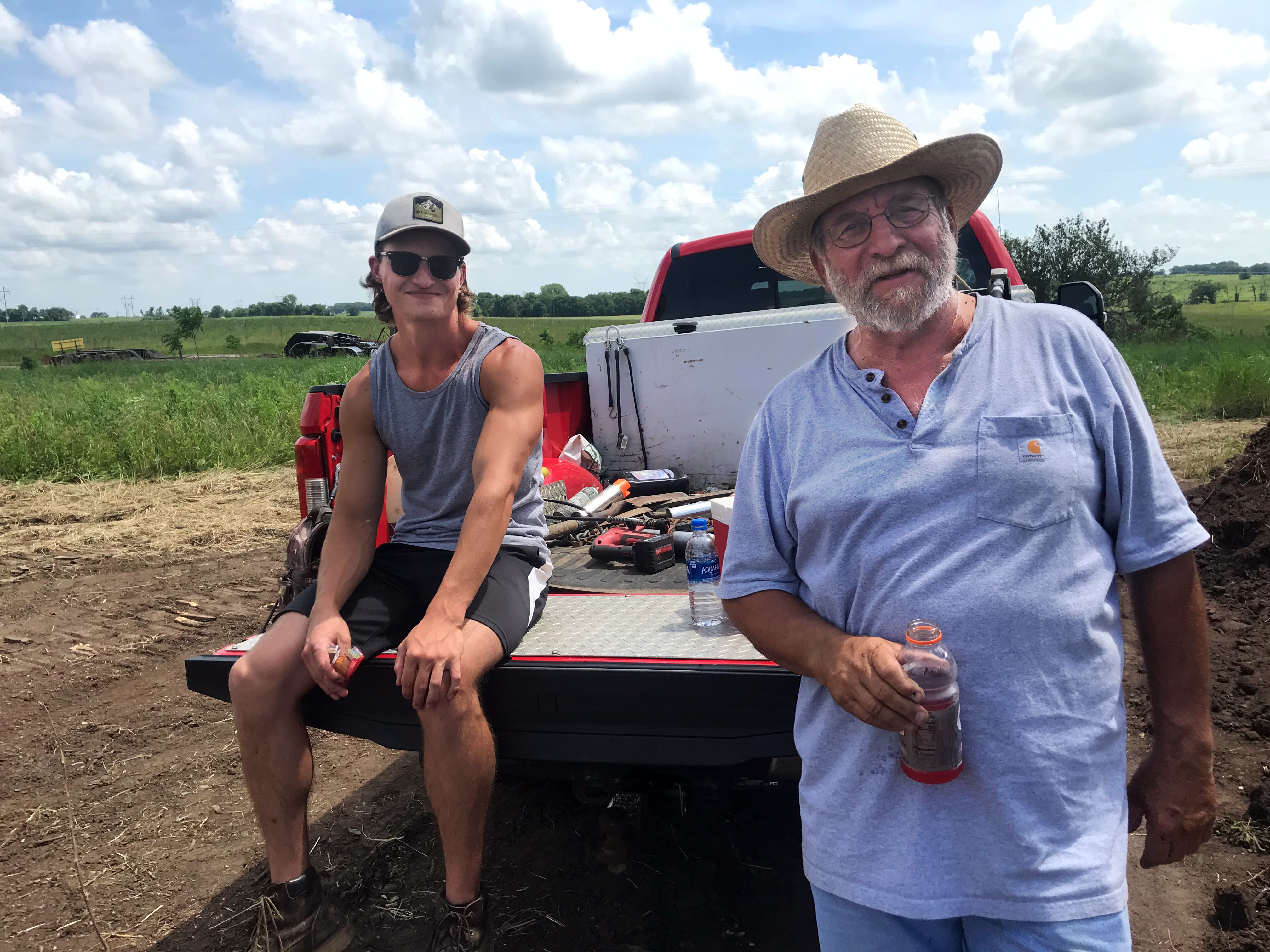 After two days the contractors had the trees piled and burned.  The excavation contractors were Bill and Brad Nordman, below.