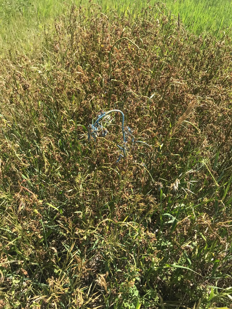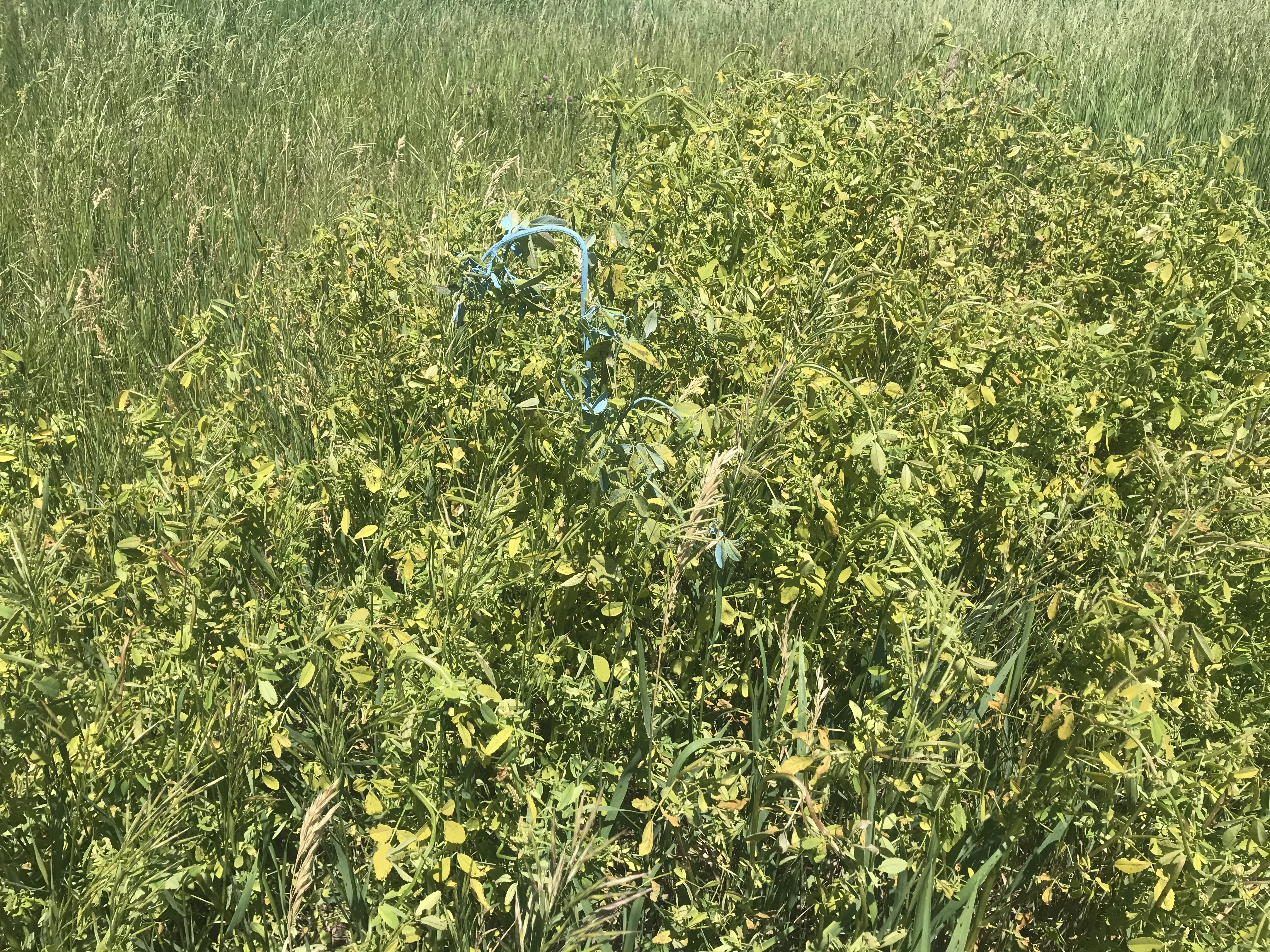 I have noticed with yellow sweet clover, Melilotus officinalis, that if I apply 1% Transline with a surfactant late in the bloom of yellow sweet clover that the clover appears to set some seed. We don’t want that. When I apply Garlon 3A or Crossbow the plants wilt and brown faster. I was curious to watch the progression of several marked yellow sweet clover that I treated with Transline on May 26, 2021. Here is one patch over time: