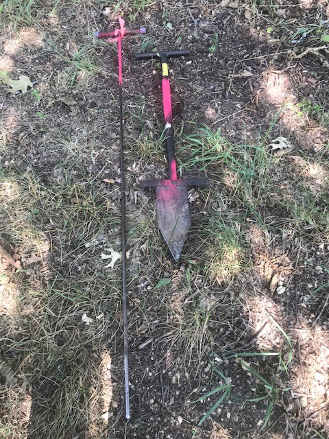 Above is seasonal crew Stephanie in 2006. She and I used dibble bars to plant oak acorns. Bernie uses a tile probe with similar effect. I remember getting blisters on my hands as the soil of the new planting was hard and dry. A study on this same field by soil scientist Mike Konen showed that the soil became less dense about ten years after planting to prairie. It took at least five years to notice any oaks emerging.