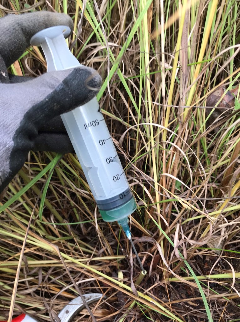 I had never thought of using syringes to apply herbicide. Sounds like a good precise method for high quality sites. Thanks Bryon!
