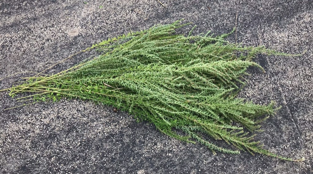 Take the entire plant you just cut and put it where you will not lose it. Gather them all up and look back, making sure you retrieved all cut plants. You do not want to go through all this work and leave a thousand seed plant laying in the prairie.