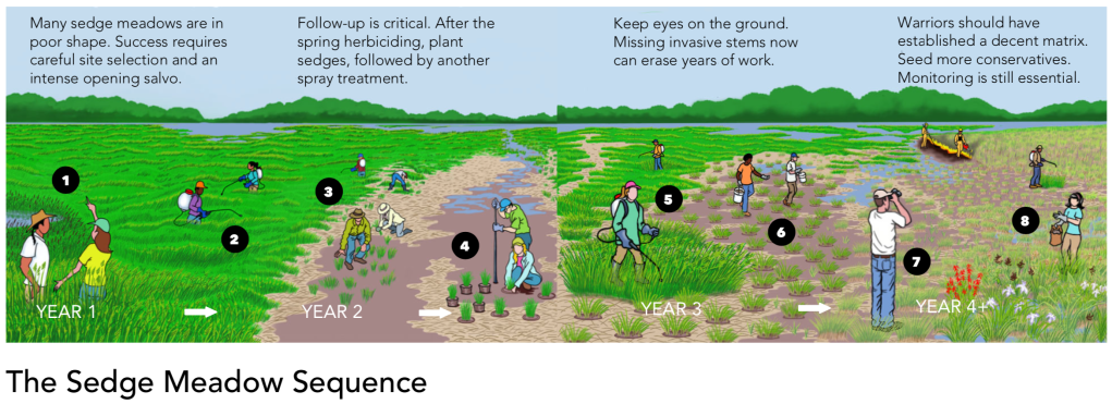The book focuses on particular restoration techniques, like the oft-duplicated Sedge Warrior process innovated by Tom Vanderpoel and Citizens for Conservation, or the backyard seed propagation efforts of Rob Sulski and the North Branch Restoration Project. Peppered throughout are nuggets of wisdom that are useful not only to those in the Chicago Wilderness region, but beyond. That’s because the conversational style of teaching that volunteer stewards excel at is faithfully reproduced throughout the book. Therefore, even if you’re restoring Longleaf Pine forests in Georgia, you can learn about the thought processes and can-do attitude that resulted in a regionally significant rare plant propagating effort and apply them to your own geography.