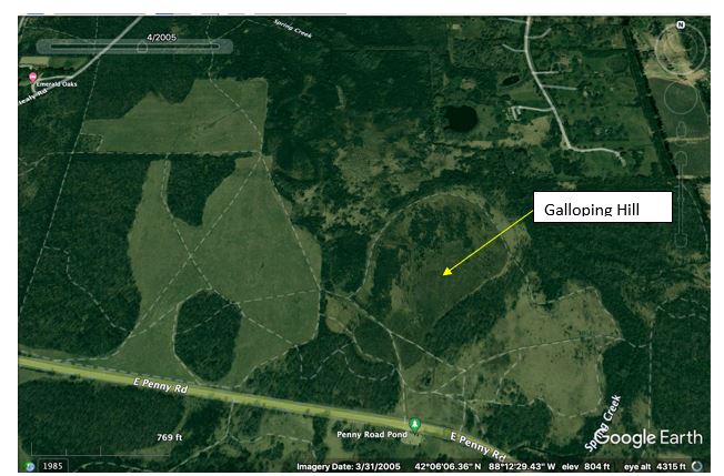 In 2005, Audubon, in partnership with the landowner, the Forest Preserves of Cook County as well as Citizens for Conservation, the US Fish and Wildlife Service and the then nascent Spring Creek Stewards volunteer group, launched the restoration of Galloping Hill. The initial size of the grassland restoration project was 110 acres at the heart of the nearly 4,000-acre preserve.
