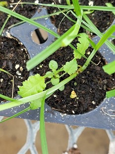 Wood Betony seedlings sown in a tray without a host. This is from the warm, cold, warm stratification method. The cold stratification batch had no germination. Photo taken 5/02/2022