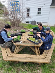 Volunteers helping pot up seedlings. We cannot have the plant plugs that we have without the dedicated time and work from our great volunteers!