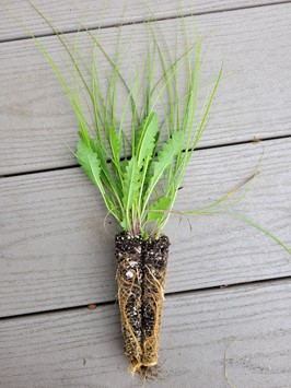 Wood Betony plug with sedge host on 7/22/2022. This plug is large enough to be planted.