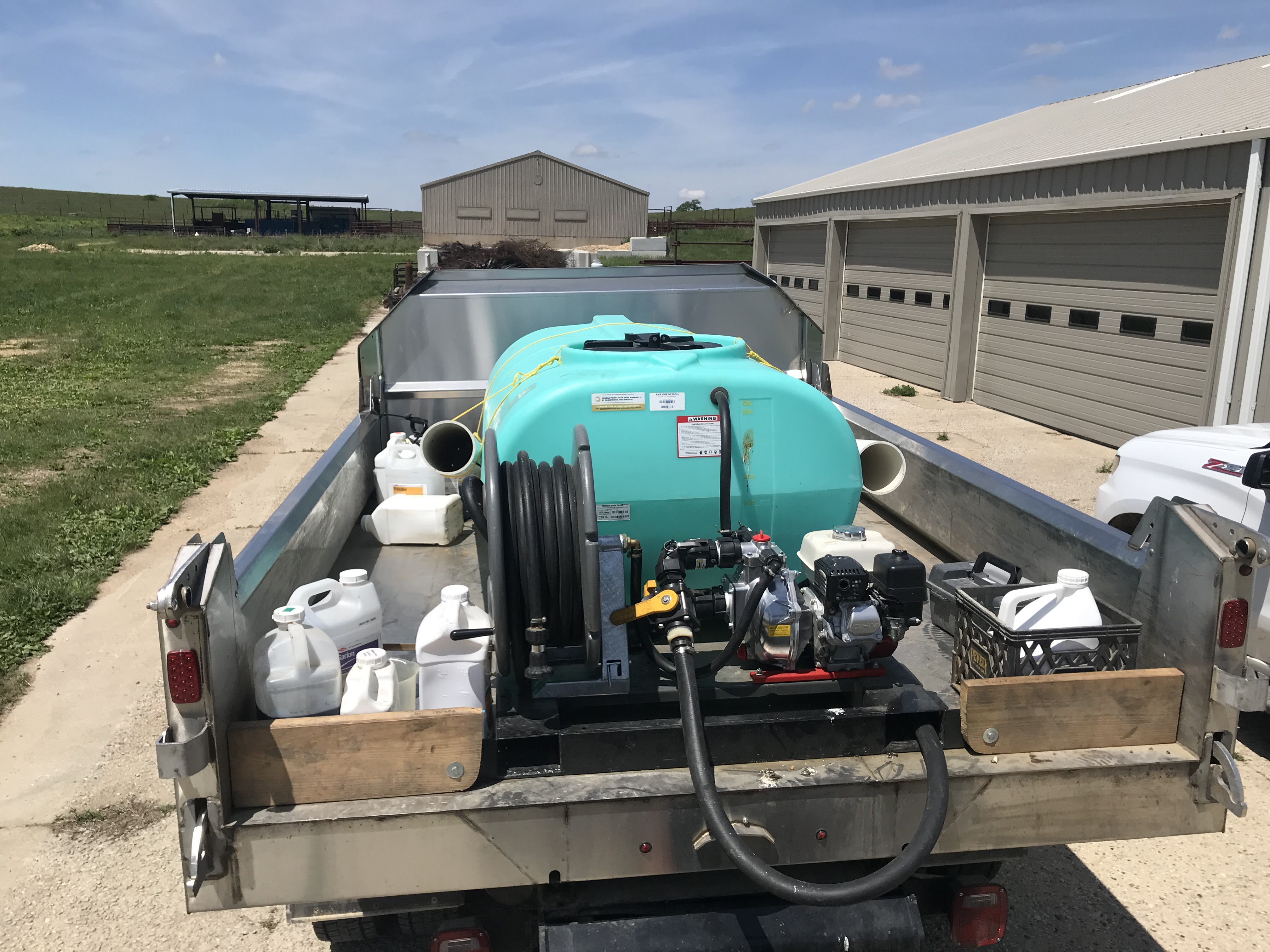 This trailering method with the water tender allows me to get to sites faster, to load the amount of herbicide mix I need, to reload a mix as needed, to go into lunch quickly, and get back out after lunch. It is more pleasant.