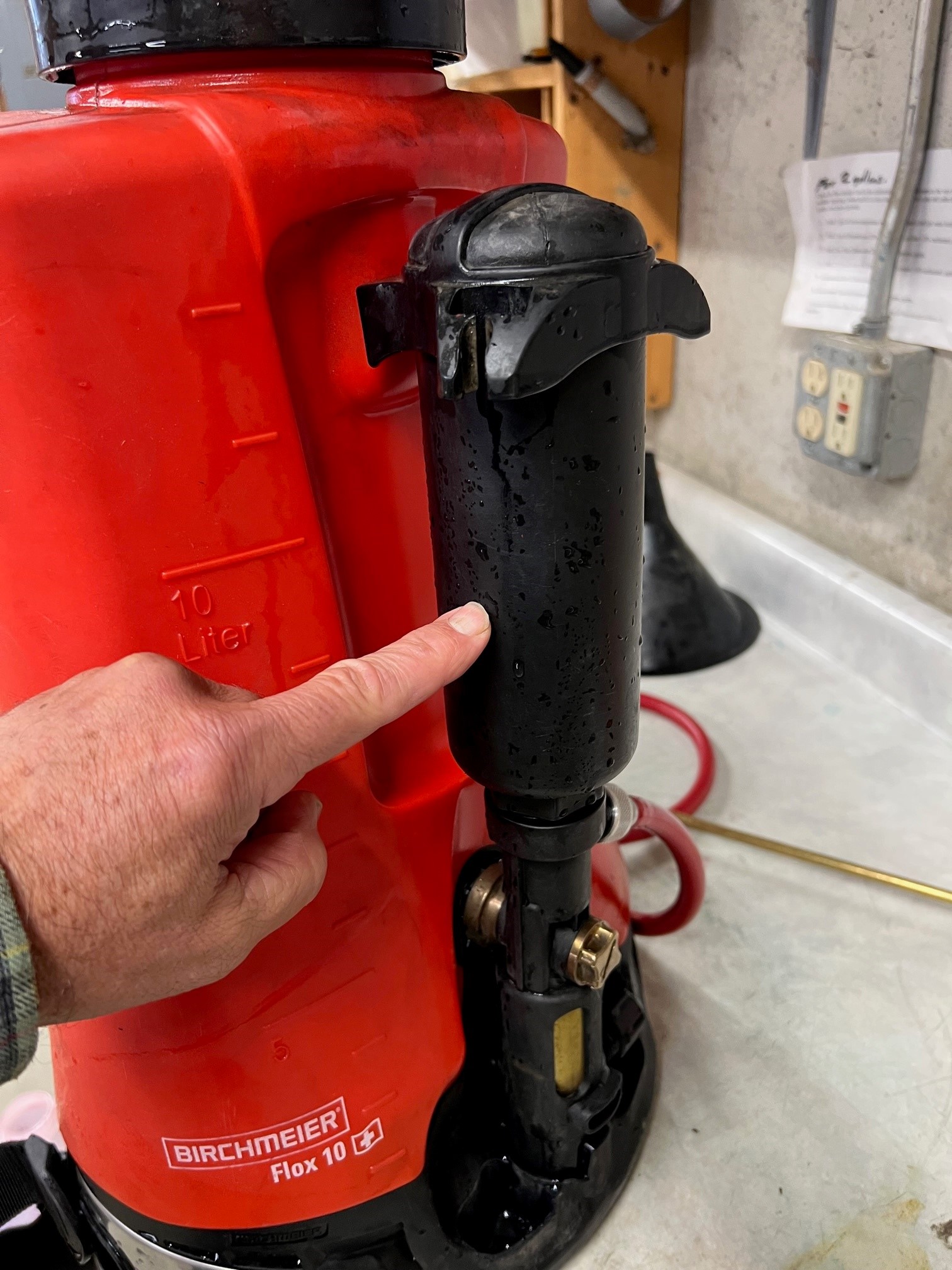 I have seen this issue before. A repair tag on the Birchmeier that says “does not pump right” or “does not spray right”. Indeed, when I tried this pack it would only pump one stroke and then the handle seemed stiff with pressure. When I sprayed it the fluid came out fast but pressure faded immediately.