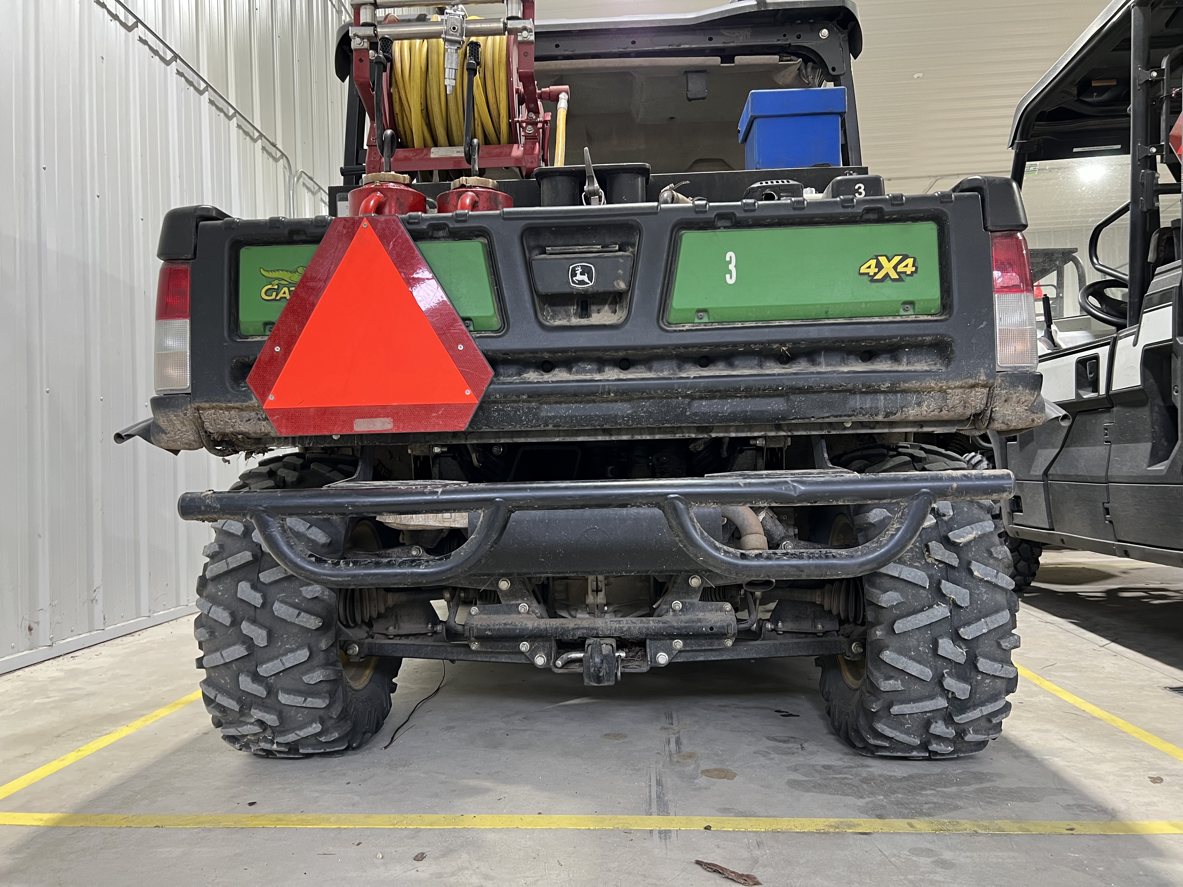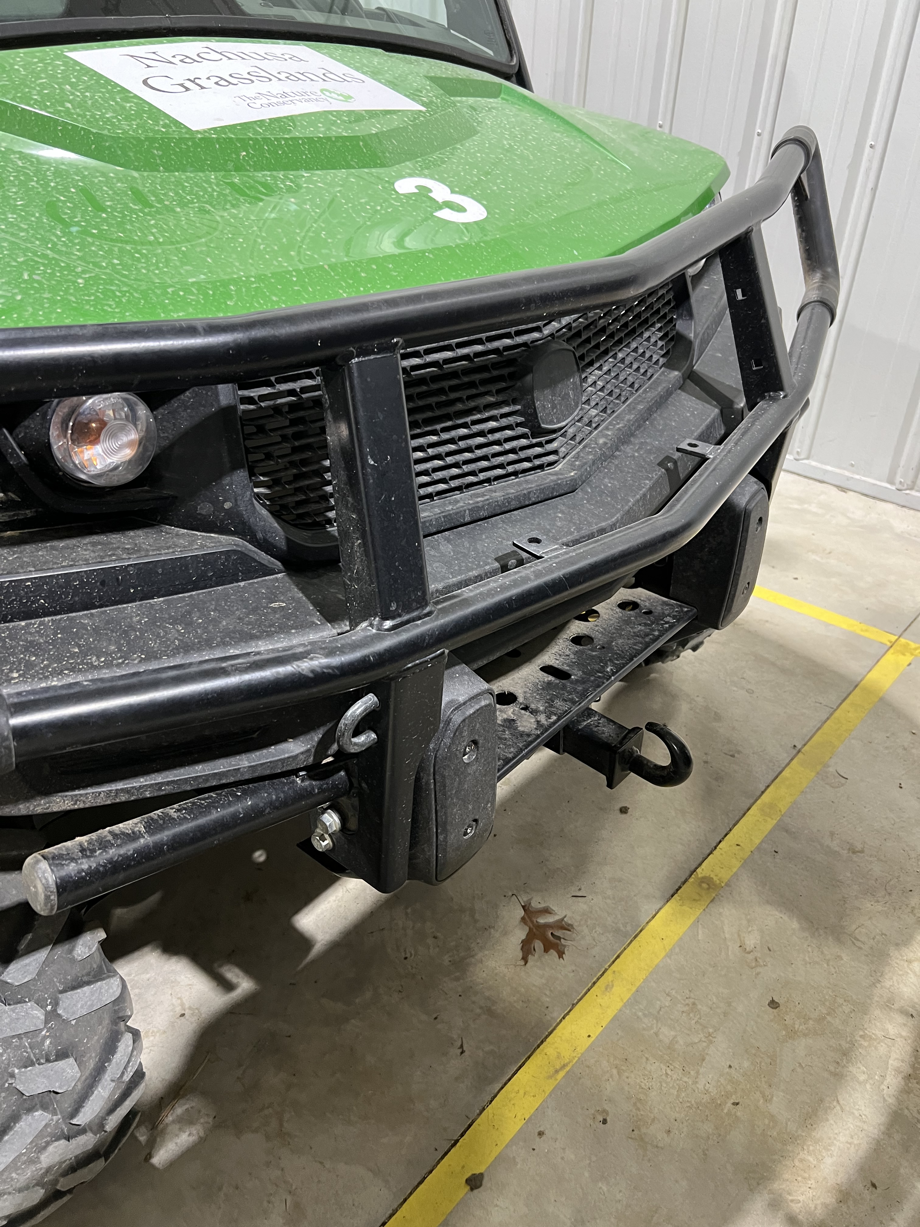 This model has a hitch receiver on the back and front. These are handy for chaining down the UTV on a trailer, or for pulling a UTV that is stuck in the mud. We try to keep a tow strap in each UTV and truck.