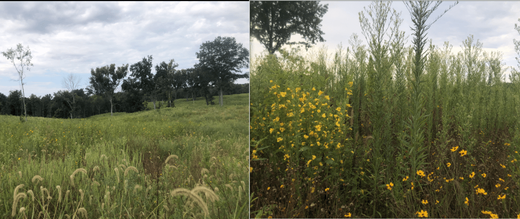 • The 40-acres has been swept on foot for invasives by our crew. They report using a total of 1 gallon of herbicide per acre on Japanese stilt grass, Sericea lespedeza, and white sweet clover. More weeds than we’d like in a first year planting, of course. But extremely important to be on them from the beginning.