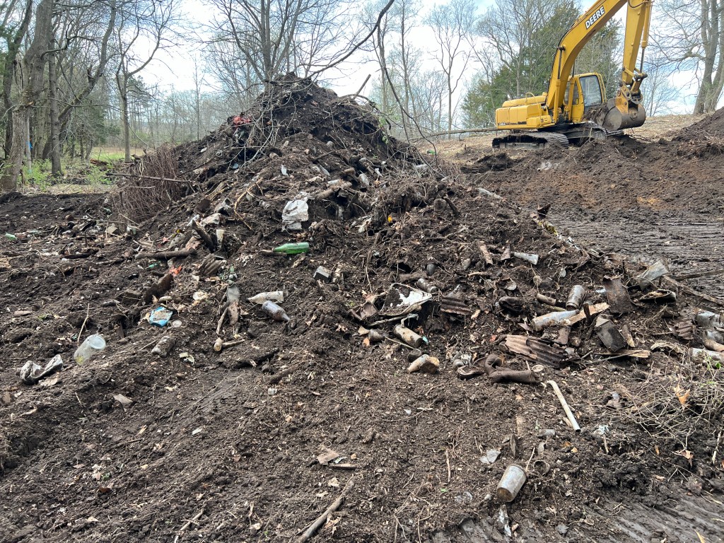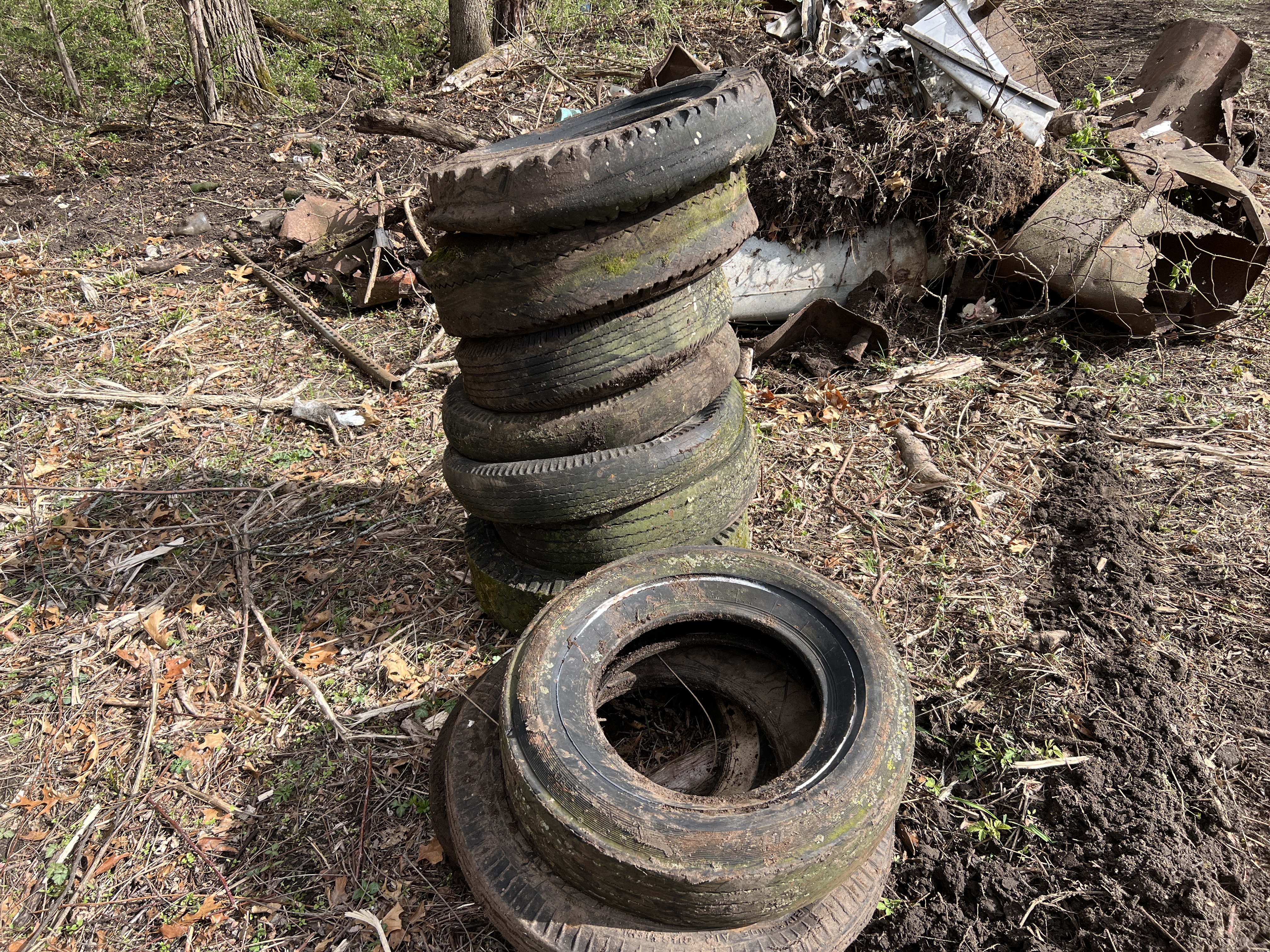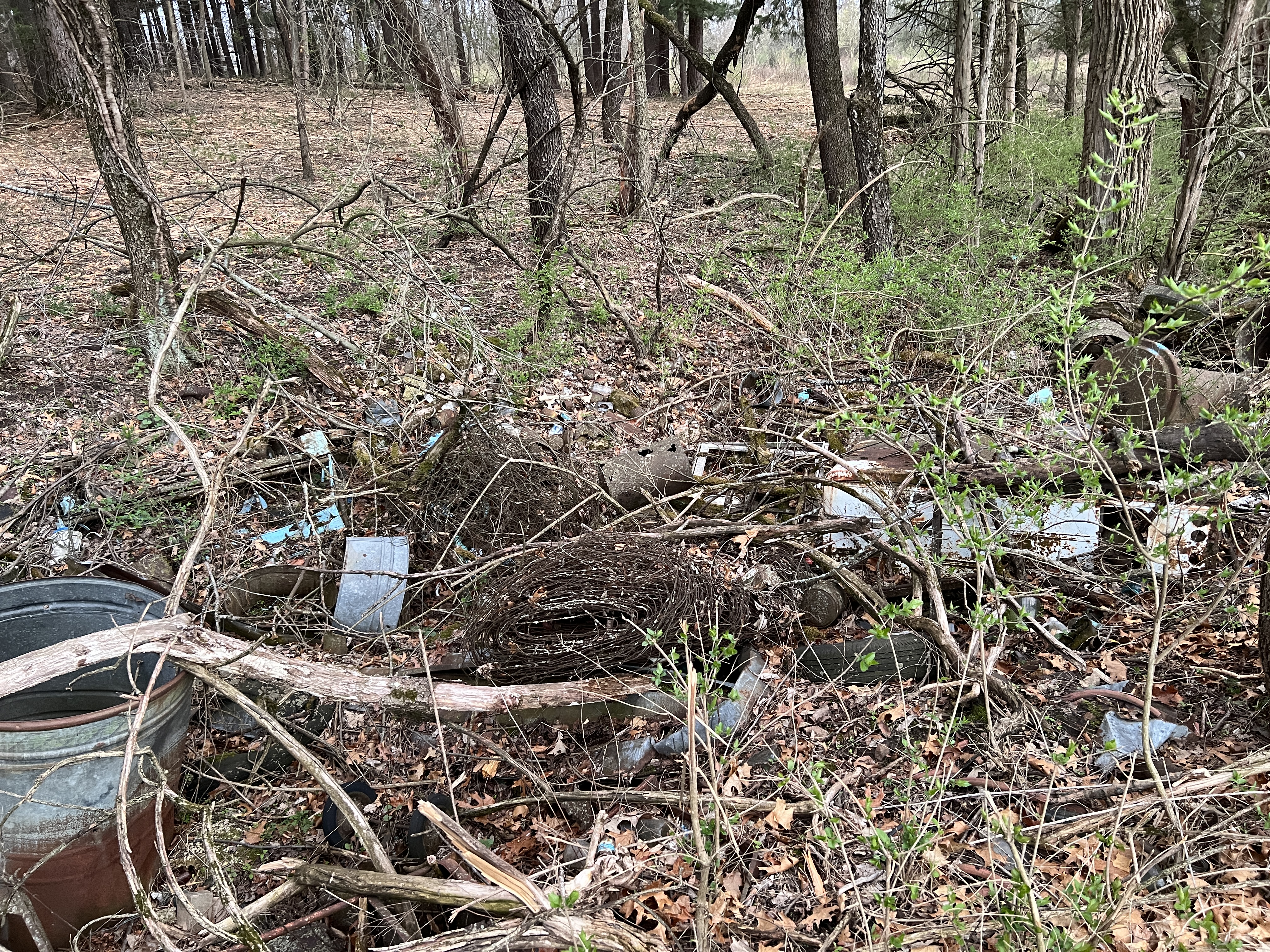 Spring cleaning. Above is old junk dumped in a ditch that we are cleaning up this week. In our grandparents time it was common to have a ditch on the back acreage to dump your abandoned old fence wire, broken implements, household appliances, tires, and in this case thousands of bottles and cans. We shun this dumping today, but we have sanitary landfills and recycling services our grandparents did not have.