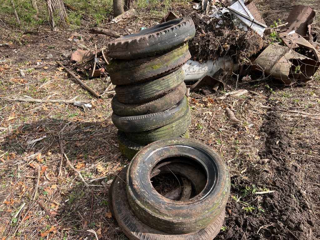 Birdsfoot trefoil is an invasive weed, also used as a pasture plant. Invasive weeds are a biological pollution. Their pollution stays a long time. Annually we search for the occurrences and treat the ones that emerged from the seed bank. For decades we track and treat this pollution. We keep after the weeds, we are happy weed warriors most of the time; but it is satisfying to just pick up some litter.