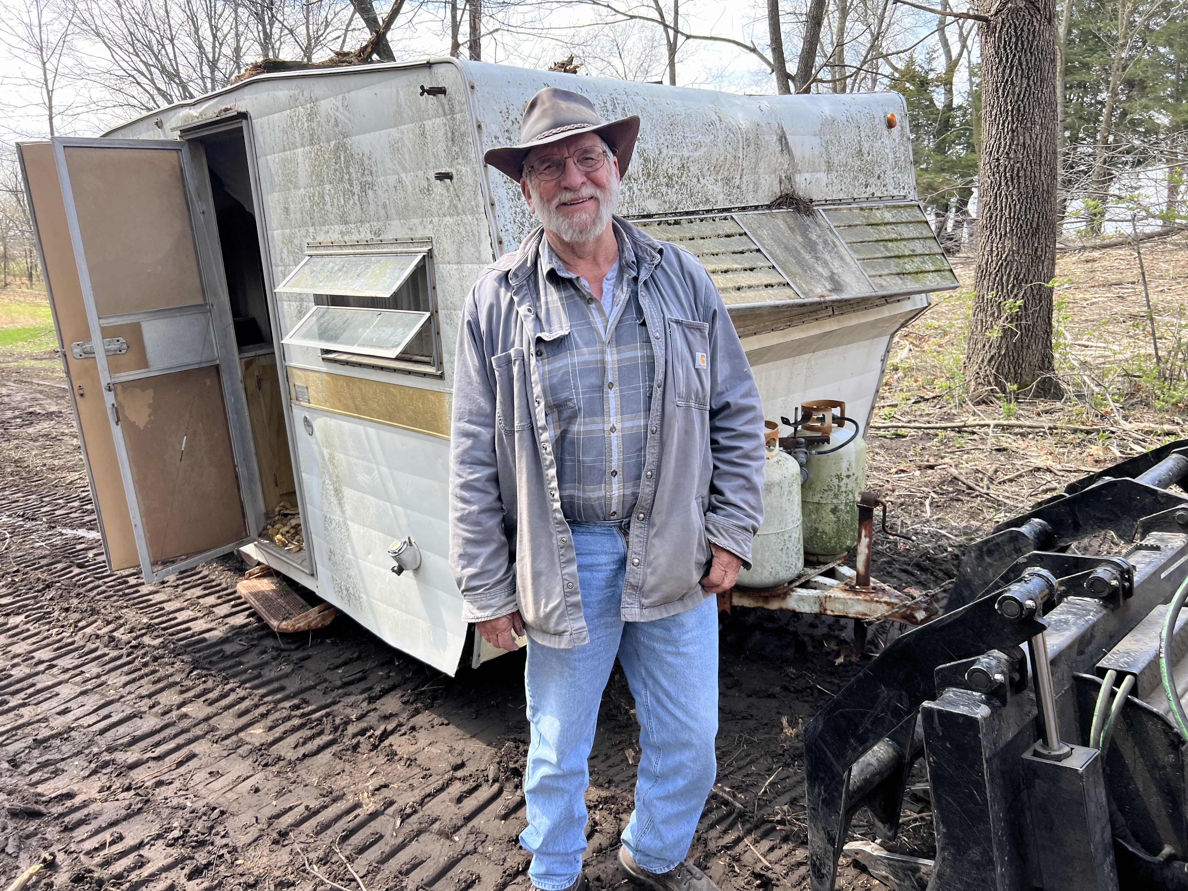 Bill Nordman worked wonders with his excavator to pull all the big stuff out of the ditch. We set aside tires to have ground up. We scrap ironed what steel we could. Some junk went to the landfill, and some was buried. This old trailer could have been yours.