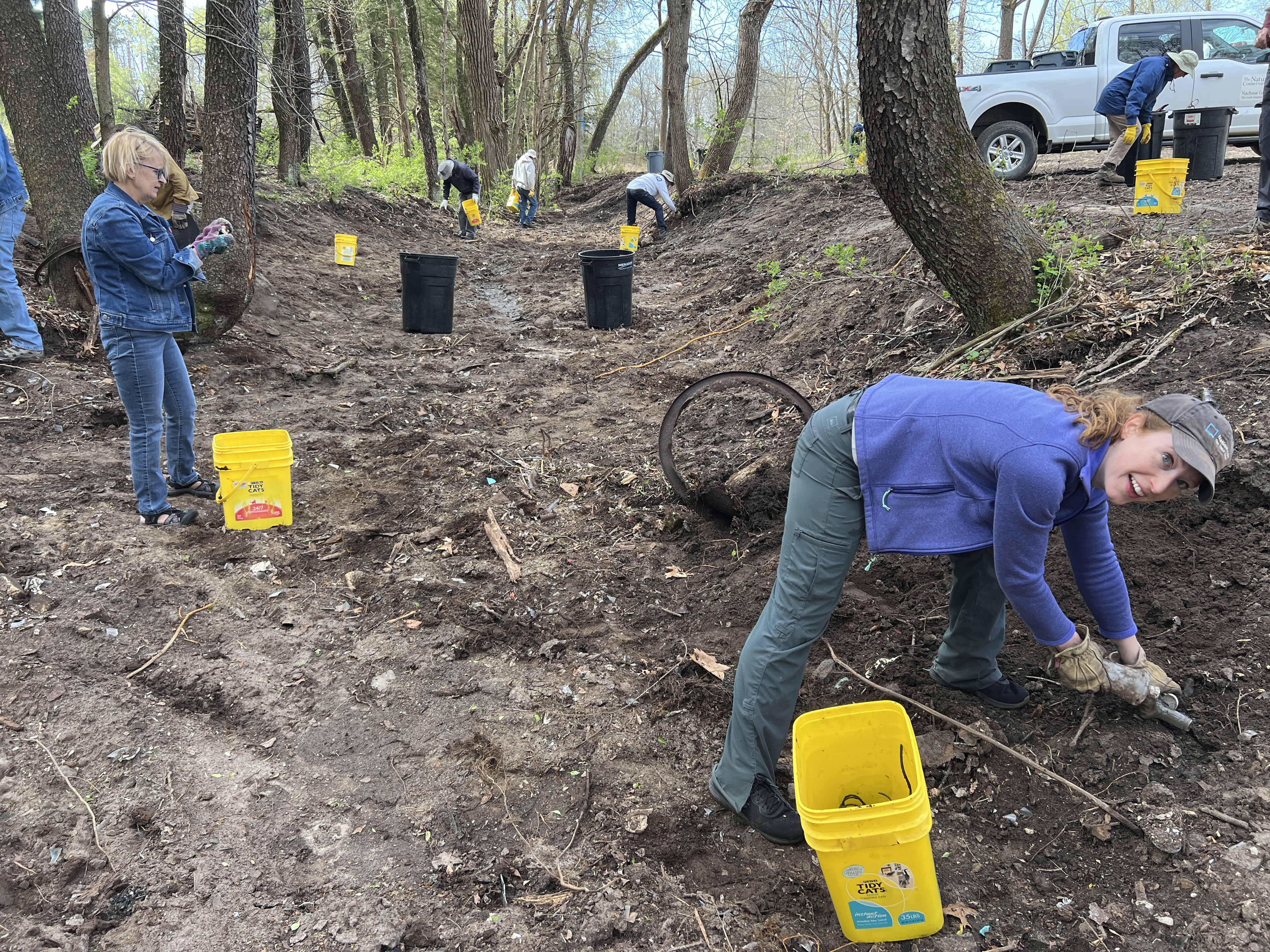 With the big stuff gone, we then had 15 volunteers come out and start picking up the little stuff. In two hours we filled up 30 large trash barrels of litter. Not the yellow 5 gallon buckets, but those big green barrels.