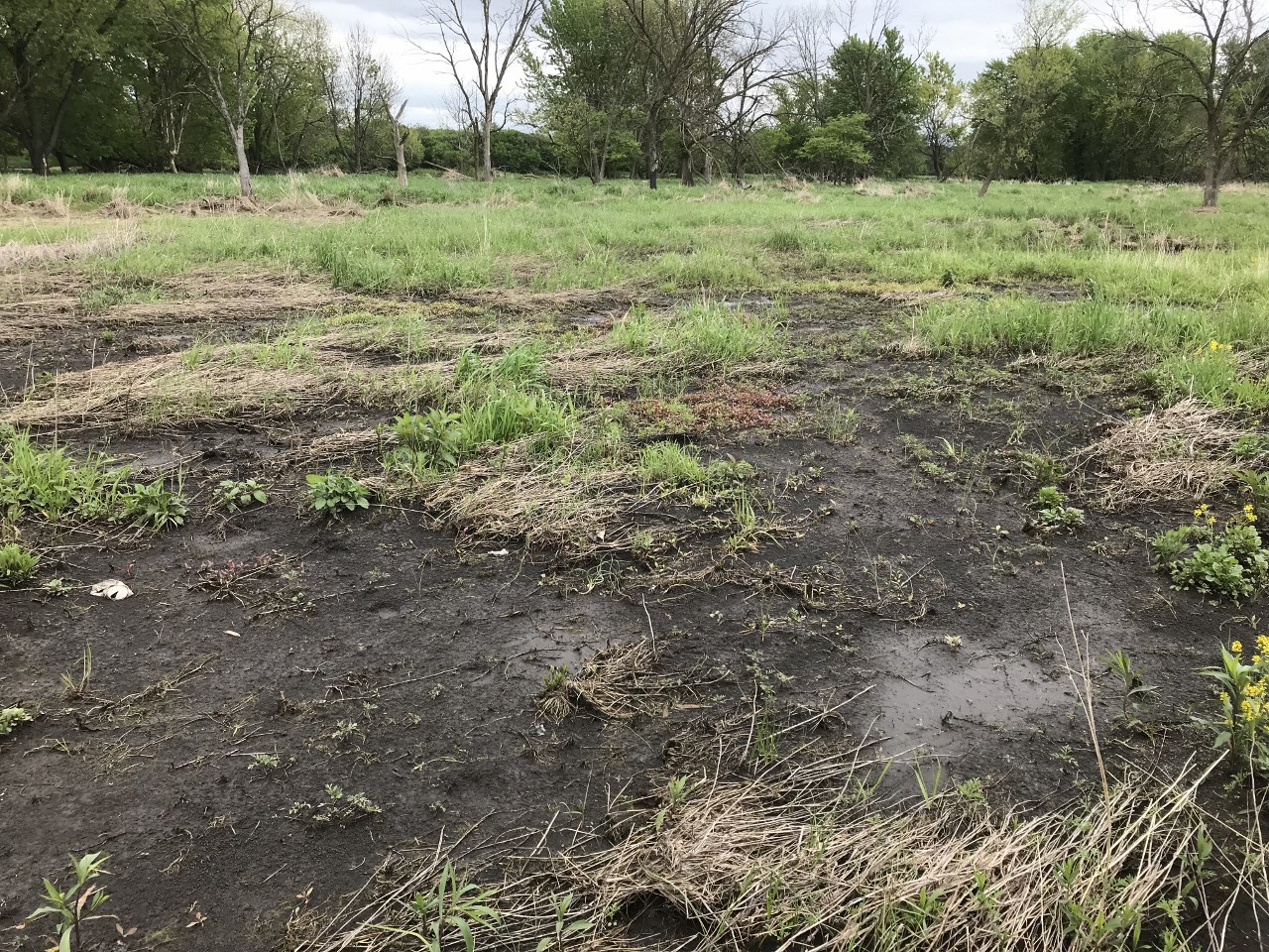 Why clethodim? For the past decade, we have used clethodim as our herbicide of choice to combat reed canary grass because it does not kill native sedges and forbs. This makes it different than using a non-selective herbicide like glyphosate or imazapyr, which leave “holes” in the vegetation because they kill everything in the overspray zone. Over the course of a decade, sites that we consistently used glyphosate to spray reed canary grass in the spring became weedier as reed canary grass and other invasives recolonized the glyphosate “holes”, necessitating more herbicide treatments in a downward spiral. In contrast, sites that we consistently used clethodim on the reed canary grass became more dominated by natives and had less invasives over time. Note that we are working in remnant and restored natural areas where there are native species present to reclaim a competitive advantage once the reed canary grass is selectively targeted.