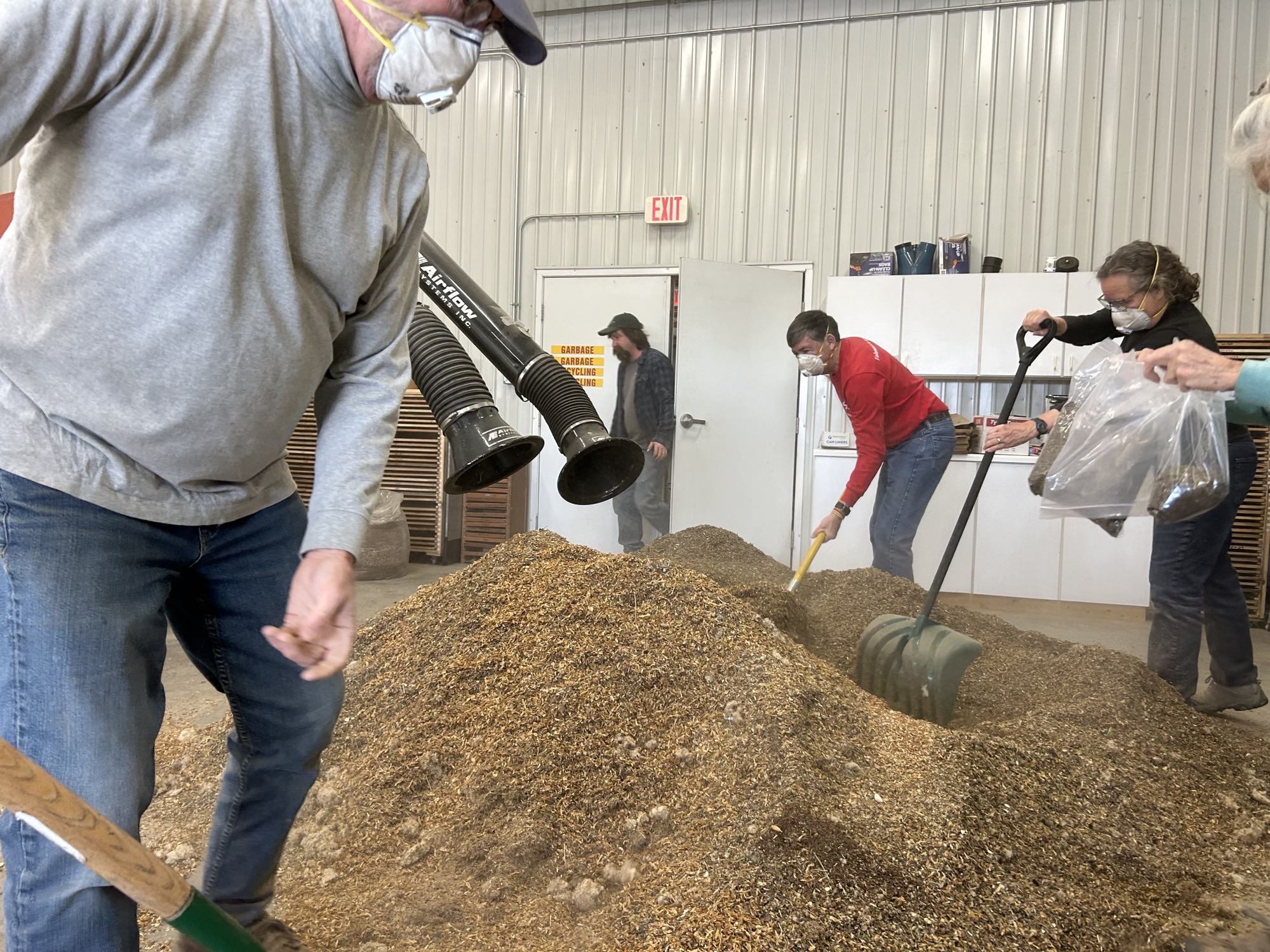 Seed mixing workdays – As soon we finish weighing and bagging, it’s time to dump all those bags back out again and create the individualized mixes for each site. It took just a handful of workdays to mix all 78. Volunteers come in and are supplied with shovels and brooms to mix the seed. Staff keep track of the different mixes, making sure they are bagged back up once mixed and labeled again for their designated site. This all requires a lot of coordination and triple-checking hundreds of labels. When we mix the different species of seed together, we add back in some of the chaff we previously removed. This is the “good chaff” that is not too dusty or full of twigs. It may sound counterintuitive to add back in what we worked so hard to remove, but having clean seed allows us to know exactly how much we have and carefully proportion it, while adding good chaff back in bulks up the mix so it can be spread more evenly and not have certain sizes of seed clumping up.