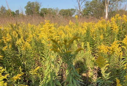 Tall goldenrod can be abundant in newly-restored woodlands and prairies in Illinois
