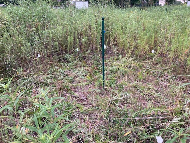 In our mowing treatements, we cut everything in the plot in order to mimic the typical mowing control of large goldenrod monocultures.  In our herbicide plots, we only selectively herbicided tall goldenrod, again to mimic the way this treatment is typically employed (mostly in smaller sites).  This difference means it may be harder to draw apples-to-apples conclusions about what’s behind the results, but ultimately what matters most is studying the methods that people are actually using in the field, so we’re ok with the trade off.