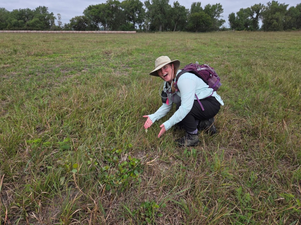 A photo of Katharine, who is very excited to have found her first Spiranthes orchid ever – in a hayed and grazed prairie restoration, too! Visual signs (plus the wonderful smell) suggest it’s S. magnicamporum, we are hoping to do genetic sequencing to confirm.