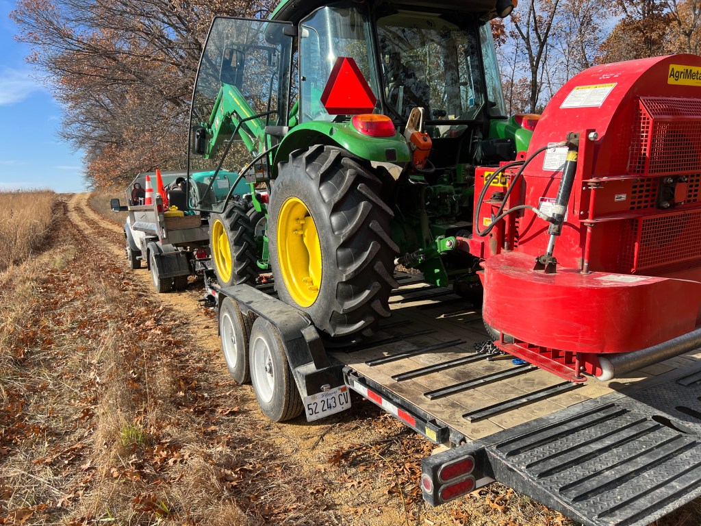 December 19: Brush mowing opens brush filled habitats that the fires can then keep sunny. Katie Jo Jackson was a regular operator of our brush mower.