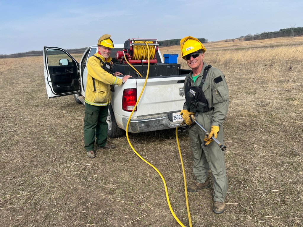 On the open prairie the pickup truck pumper is nice as it holds nearly 3 times the water the UTV carries. Mark Herman was driver with Steve Lardner on the hose.