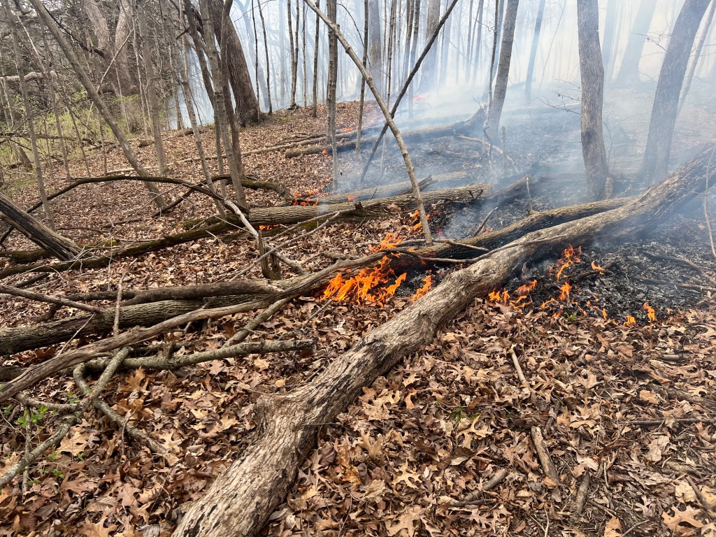 April 9 IL DNR Franklin Creek Natural Area, 21-acres. These very modest flames do some good if they can just keep going.