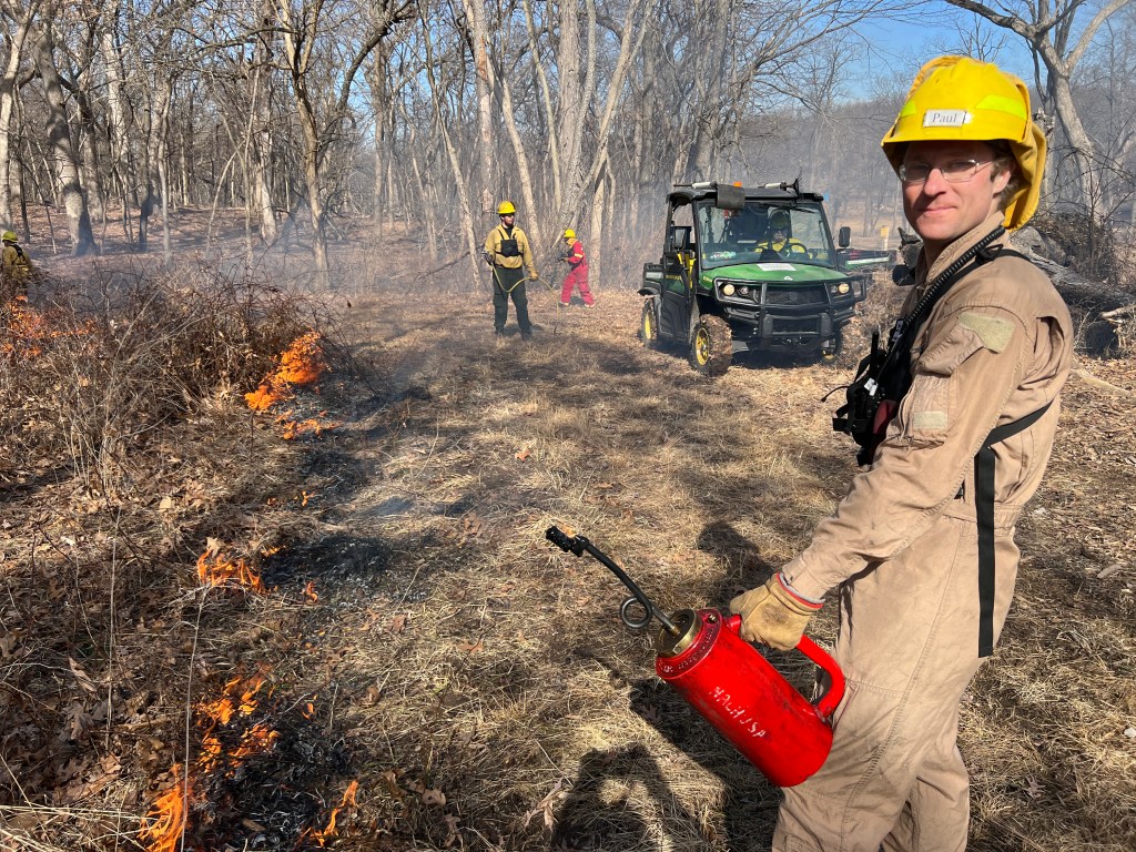 February 16: Big Jump East, 180-acres. The climate is such now-a-days, that in the last several years we can burn in February. Paul Say is a food engineer by day and volunteer steward by weekend.