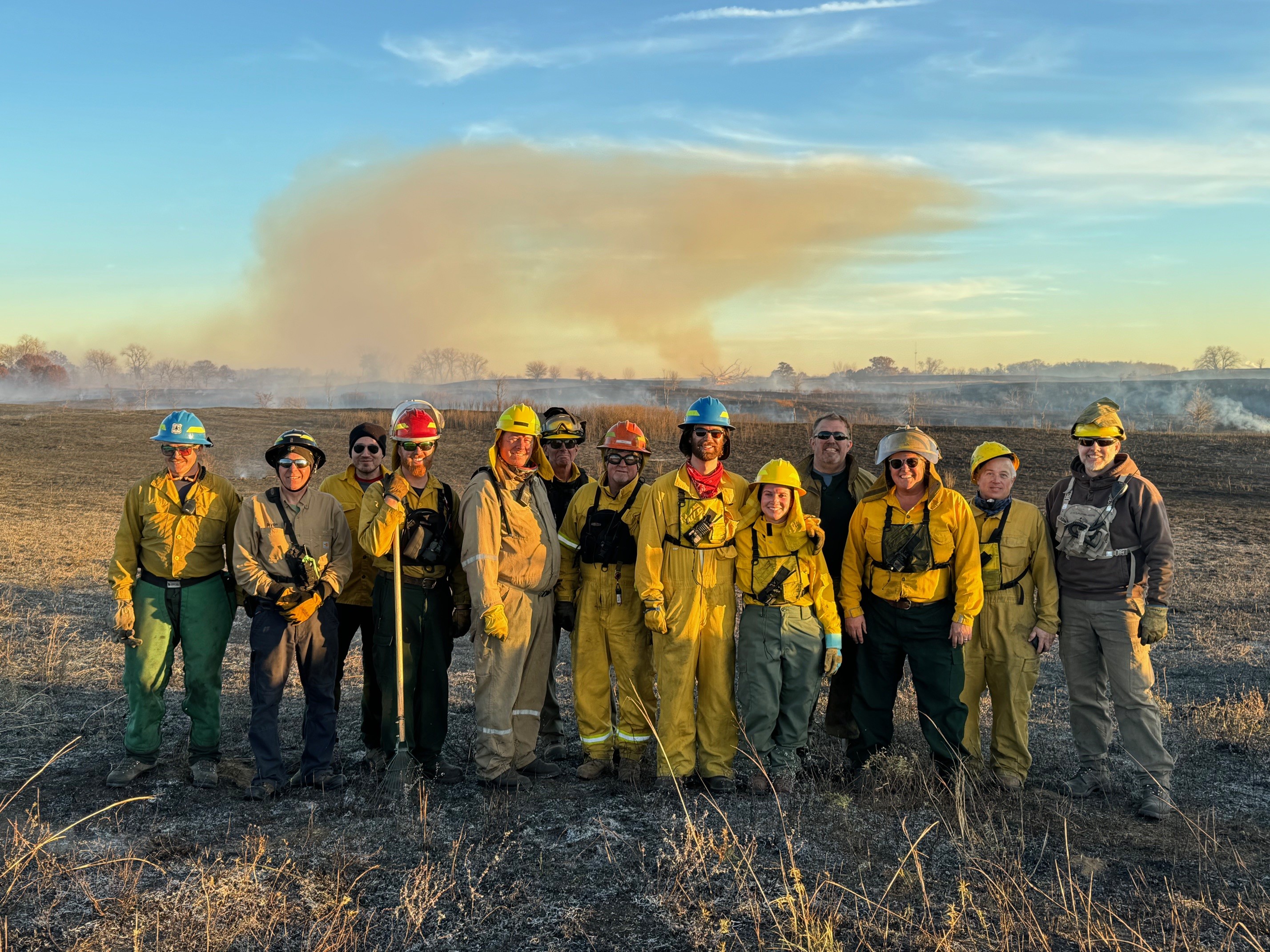 November 16, DNR fire at Mineral Marsh, 160-acres. Russ Blogg was Burn Boss. About half of this crew are citizen volunteers who made this big burn possible. Nachusa supports natural areas management in the region. We care for our preserve, but we also turn outwards and support other preserves as they are important too. Photo: R Blogg