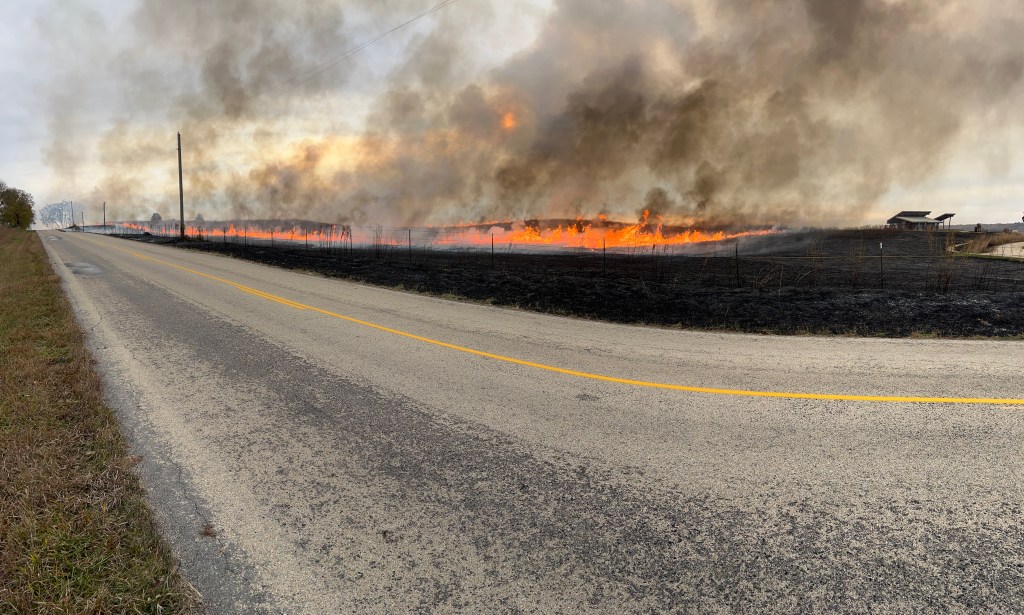November 6: Visitor Center Prairie burn, 31-acres. Smoke blowing out of the east sending smoke away from the road.