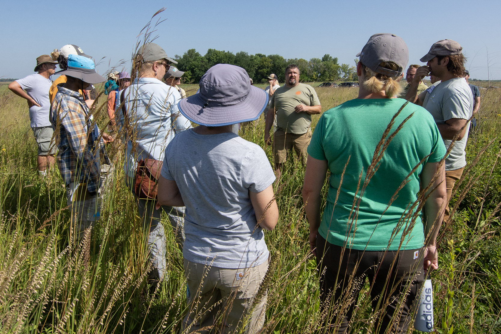 Jeff Zajac (center) at the 2023 Grassland Restoration Network near Windom, Minnesota.